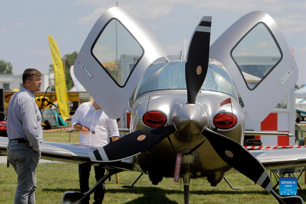 A man looks at an aerobatic plane during Aero Expo Fest near Bucharest, Romania, on June 25, 2022. (Photo by Cristian Cristel/Xinhua)
