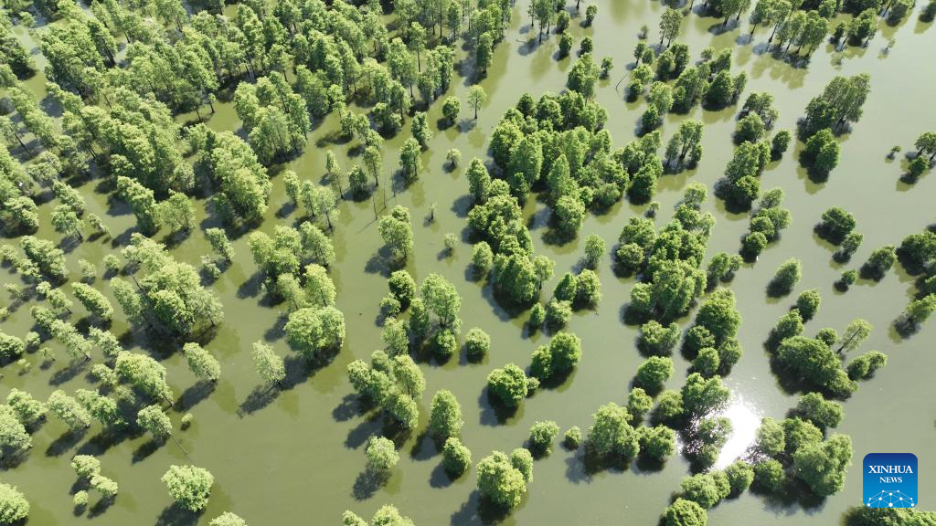 Aerial photo taken on June 25, 2022 shows a view of the Chishan Lake National Wetland Park in Chuzhou, east China's Anhui Province. (Xinhua/Cao Li)