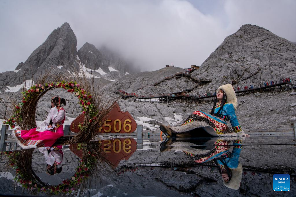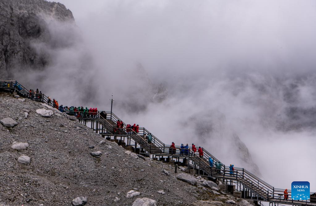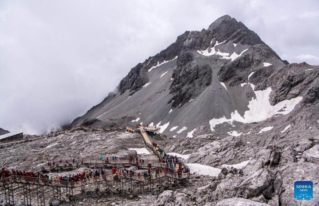 Tourists visit the scenic area of Yulong Snow Mountain in Lijiang City, southwest China's Yunnan Province, June 26, 2022. (Xinhua/Jiang Wenyao)