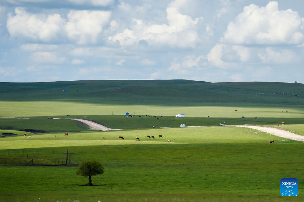 Photo taken on June 26, 2022 shows the landscape of the summer pasture in Xin Barag Zuoqi of Hulun Buir City, north China's Inner Mongolia Autonomous Region. (Xinhua/Wang Zecong)