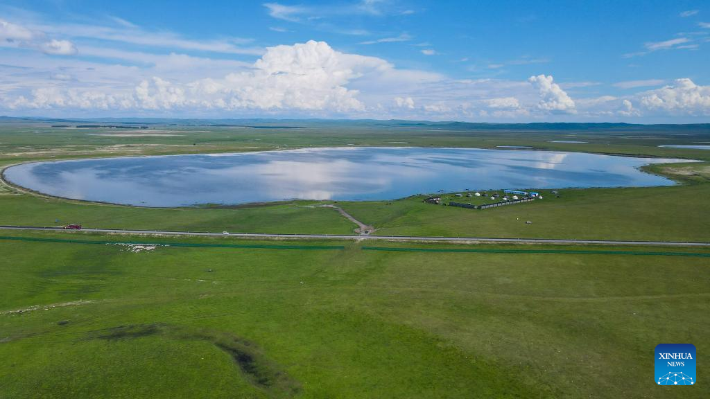 Aerial photo taken on June 26, 2022 shows the landscape of the summer pasture in Xin Barag Zuoqi of Hulun Buir City, north China's Inner Mongolia Autonomous Region. (Xinhua/Wang Zecong)