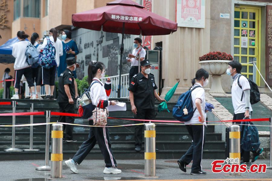 Students queue to enter a middle school in Beijing, June 27, 2022. (Photo: China News Service/Jia Tianyong)