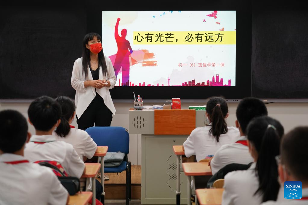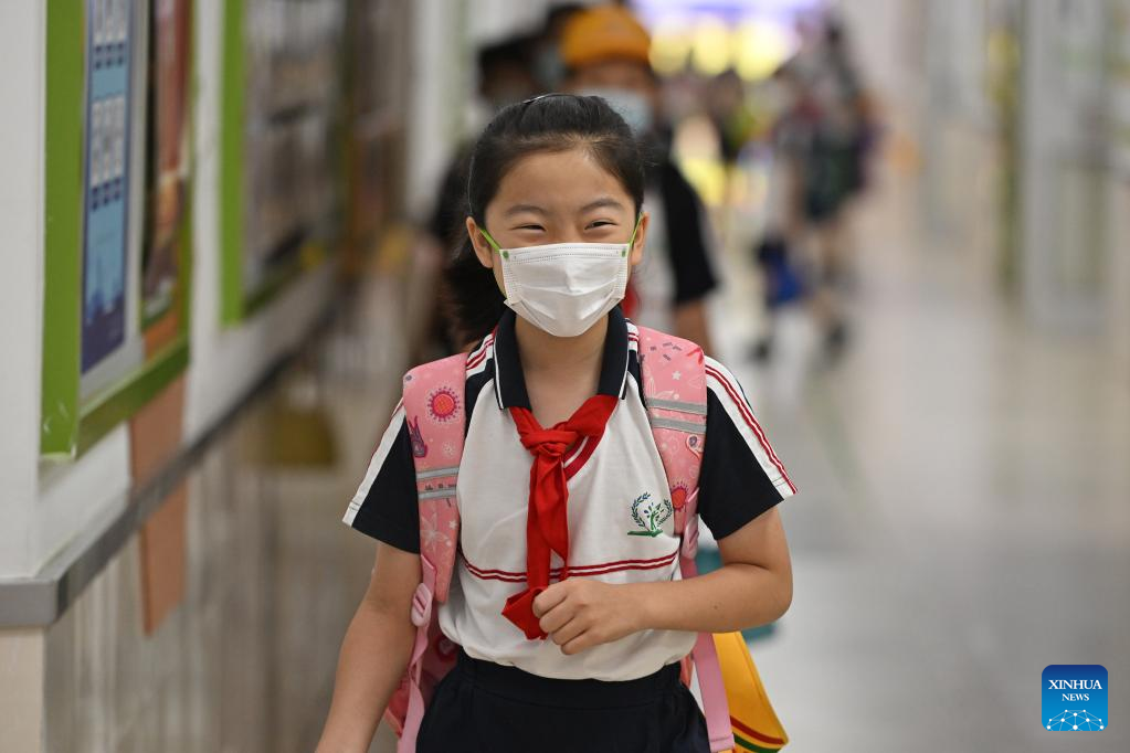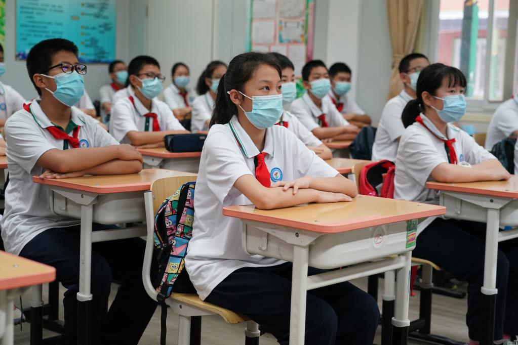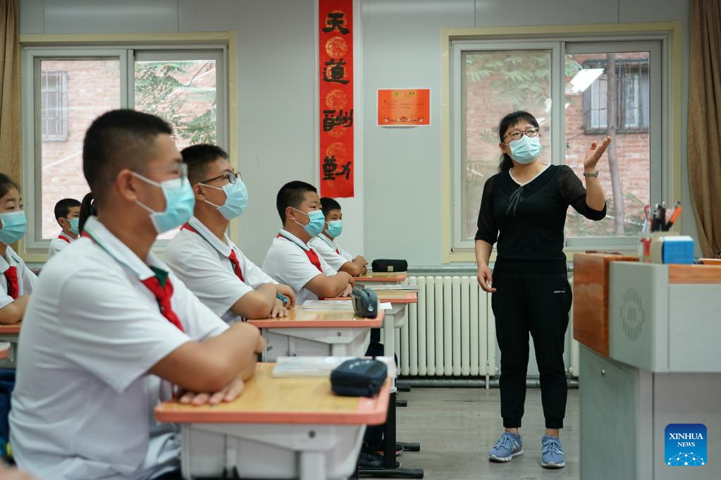 Students in the first two years of junior high and senior high schools, or grades 7, 8, 10 and 11, as well as those in primary schools, resumed in-person classes. Education for students in grades 9 and 12 concluded earlier. (Xinhua/Ren Chao)
