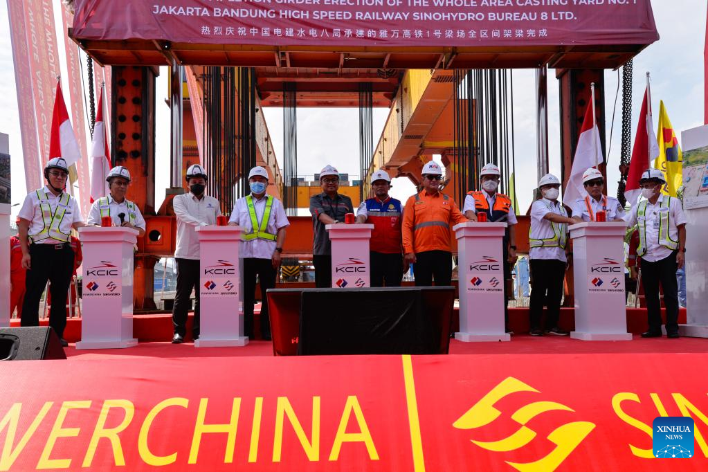 JAKARTA, June 27 (Xinhua) -- The No.1 casting yard of the Jakarta-Bandung High-Speed Railway (HSR) on Monday completed the erection of 1,018 box girders, laying a solid foundation for the completion of the railway project in June 2023.