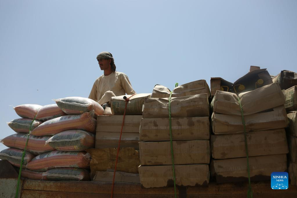 Photo taken on June 26, 2022 shows food aid donated by a Chinese firm in Khost province, Afghanistan. The first batch of food aid donated by a Chinese firm has reached the earthquake-hit region in eastern Afghanistan, an Afghan disaster management official said on Monday. (Photo by Saifurahman Safi/Xinhua)