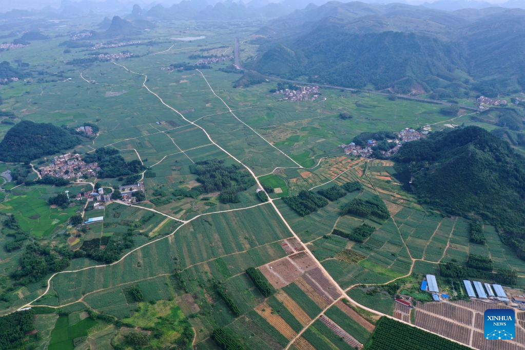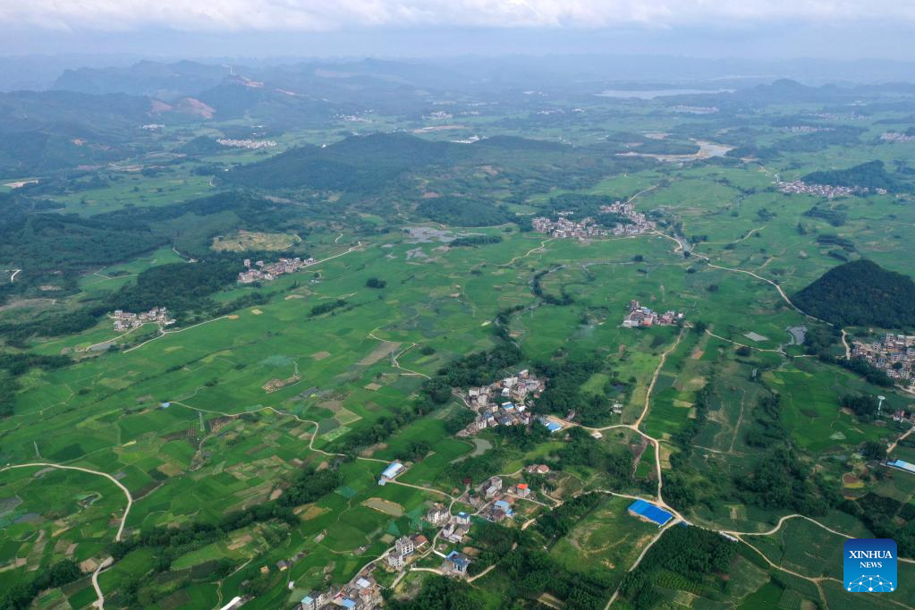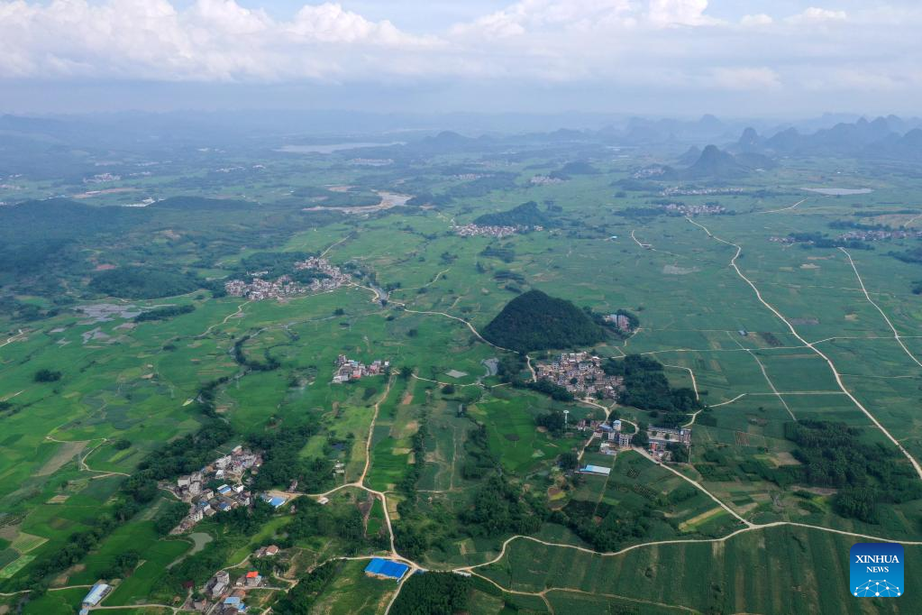 Aerial photo taken on June 27, 2022 shows the scenery of Tantou Township in Rongan County, south China's Guangxi Zhuang Autonomous Region. (Xinhua/Huang Xiaobang)