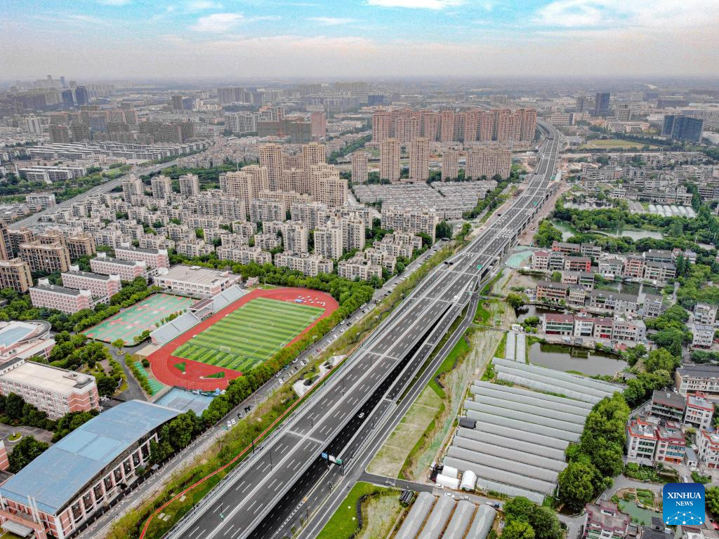 Aerial photo taken on June 28, 2022 shows the second phase of Donghu Overpass in Hangzhou, east China's Zhejiang Province.