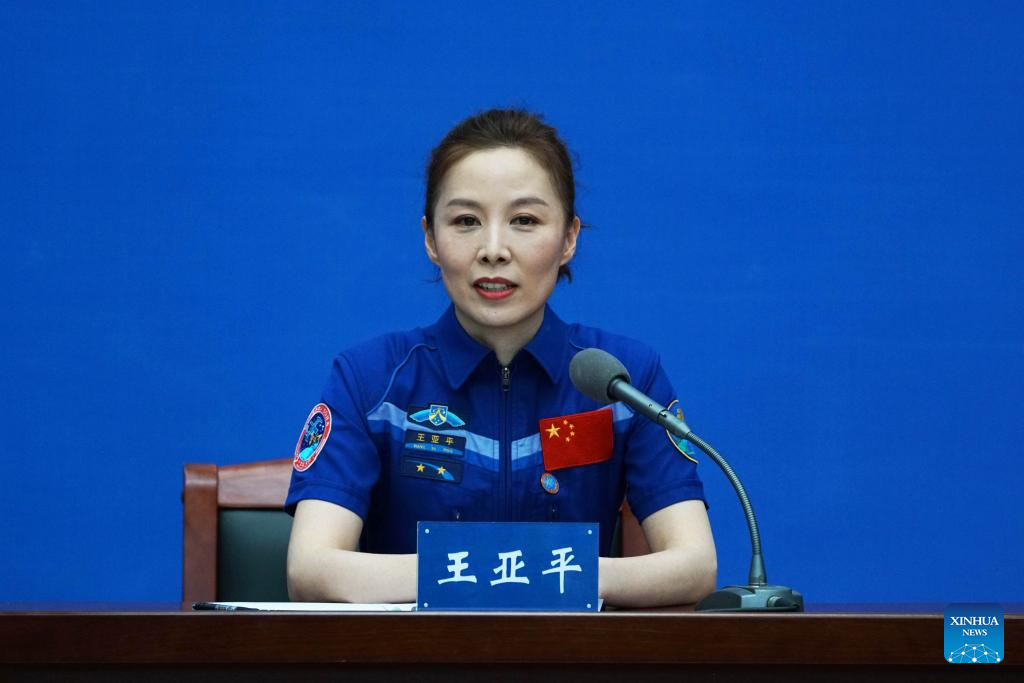 Wang Yaping, one of the three astronauts of China's Shenzhou-13 crewed mission, meets the press in Beijing, June 28, 2022. (Xinhua/Guo Zhongzheng)