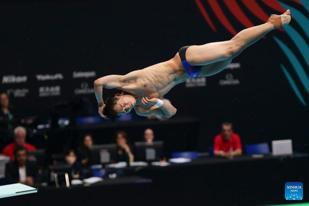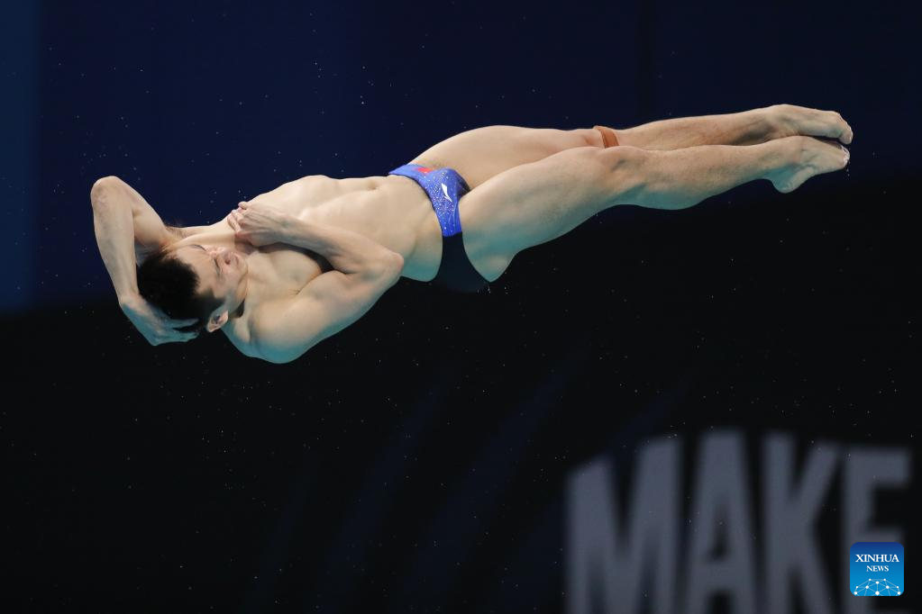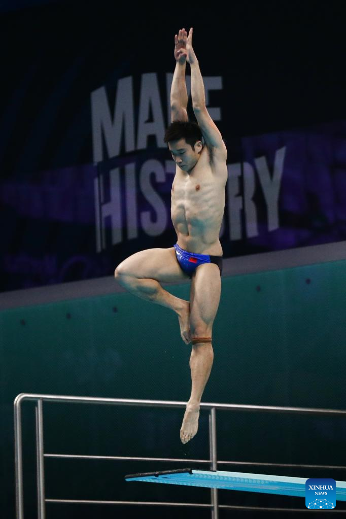 Cao Yuan of China competes during the men's 3m springboard final of diving at the 19th FINA World Championships in Budapest, Hungary, June 28, 2022. (Xinhua/Zheng Huansong)