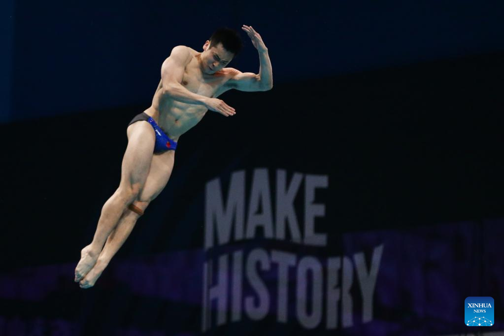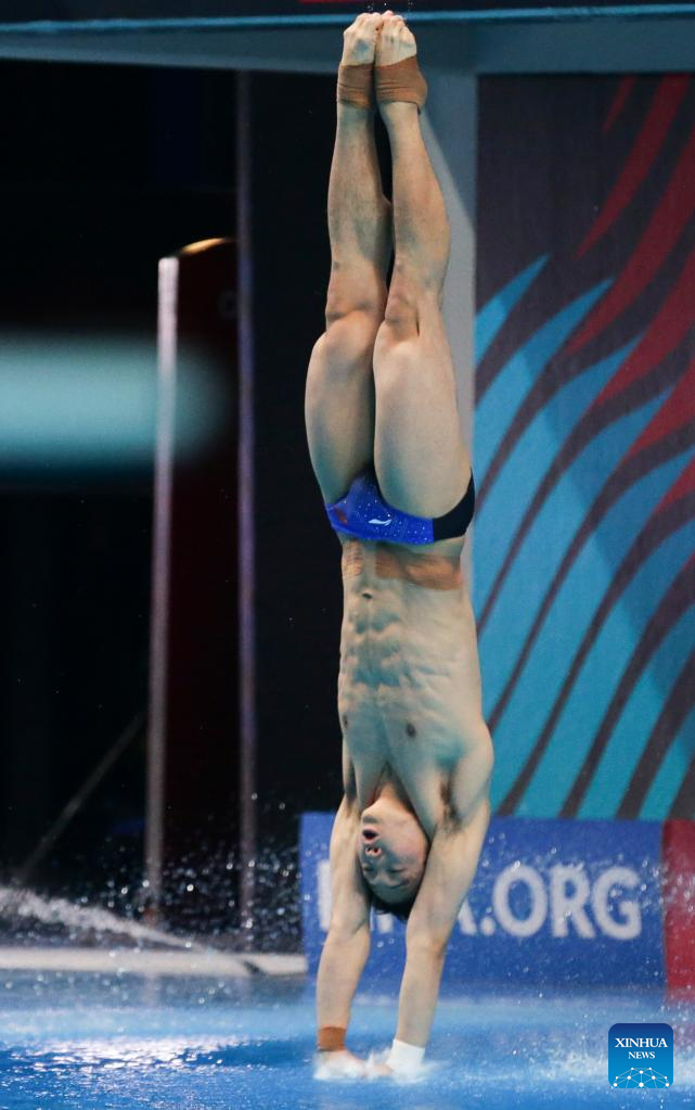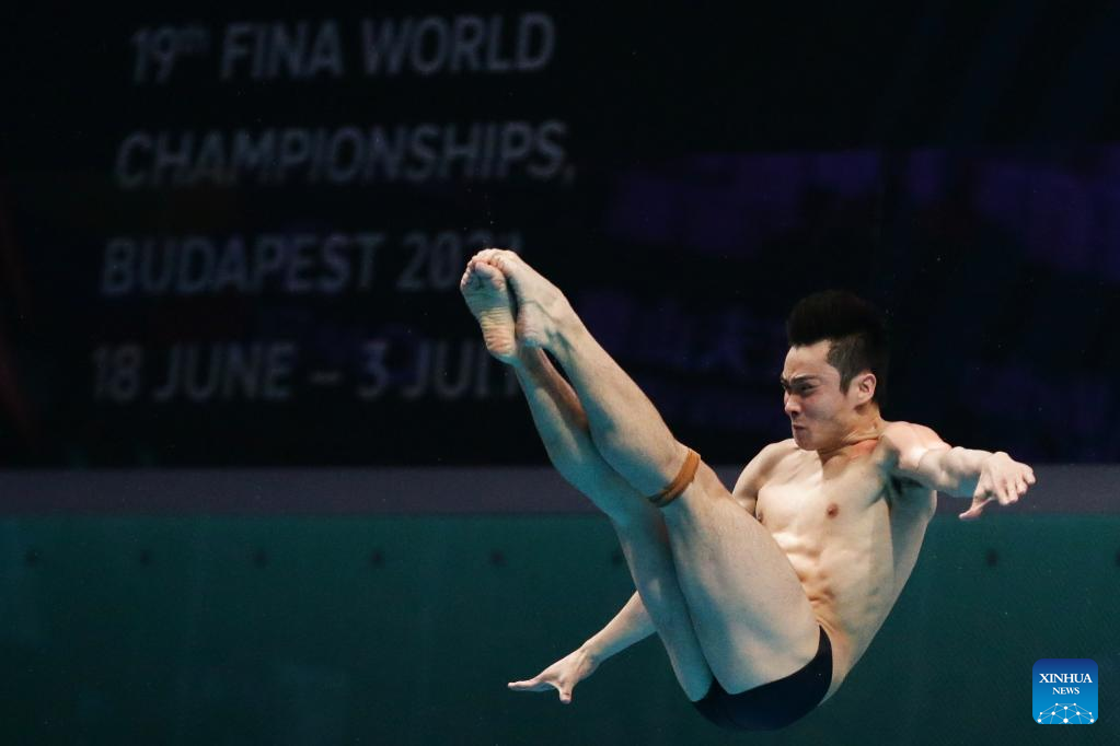 Wang Zongyuan of China competes during the men's 3m springboard final of diving at the 19th FINA World Championships in Budapest, Hungary, June 28, 2022. (Xinhua/Zheng Huansong)