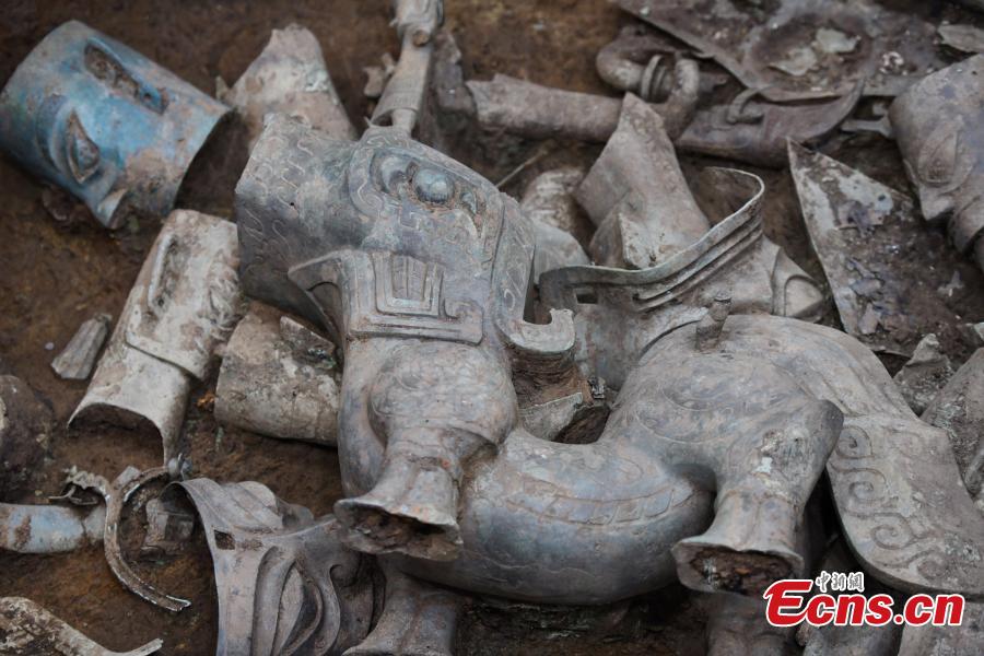 Large number of bronze wares unearthed at Sanxingdui Ruins site