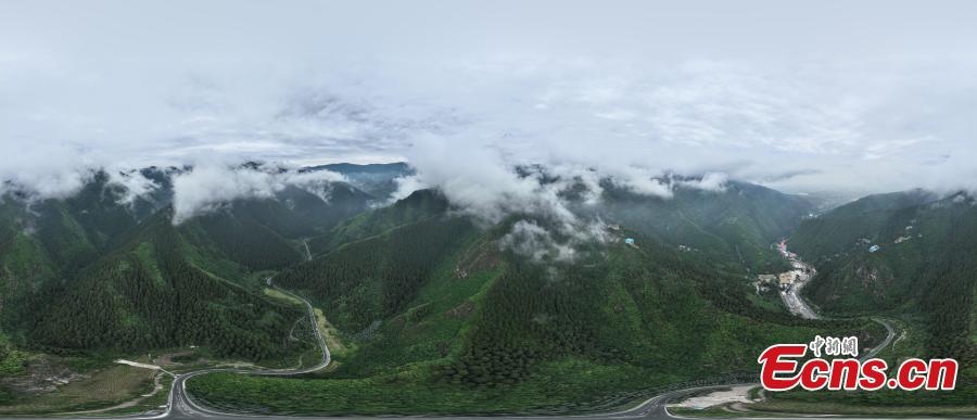 A sea of clouds hover over Xinglong Mountain after summer rain, forming a magnificent landscape in Lanzhou, northwest China's Gansu Province, June 28, 2022. (Photo: China News Service/Zhao Xiangjun)