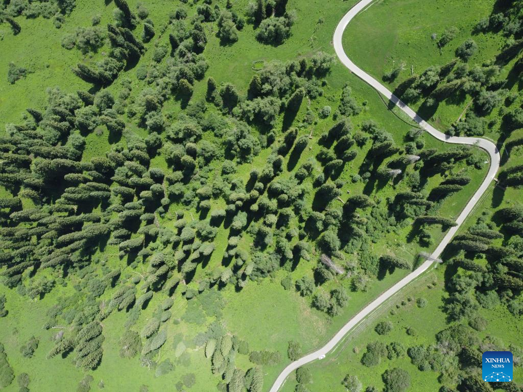 Aerial photo taken on June 28, 2022 shows a view of Narat scenic spot in Xinyuan County, northwest China's Xinjiang Uygur Autonomous Region. (Xinhua/Hao Jianwei)