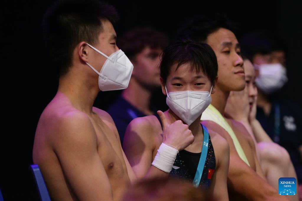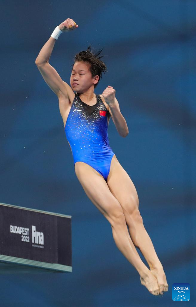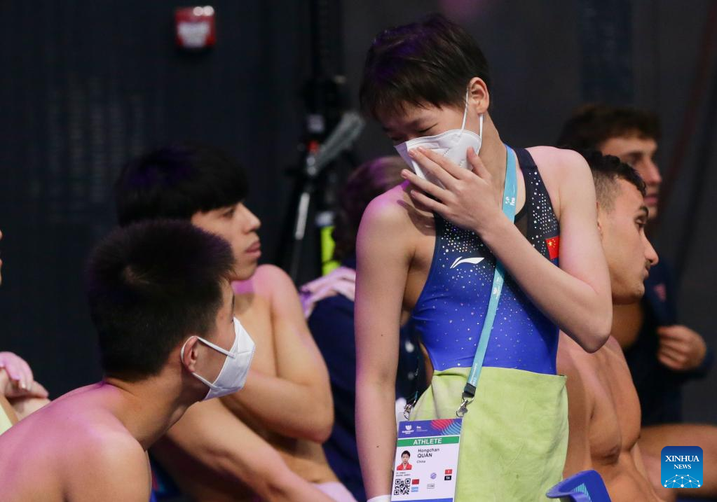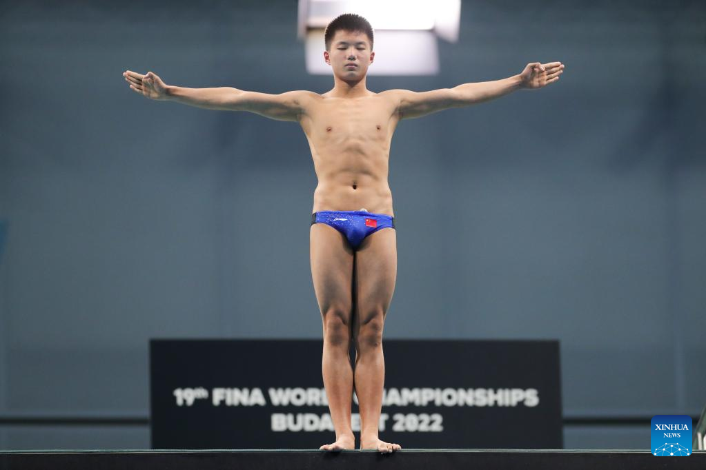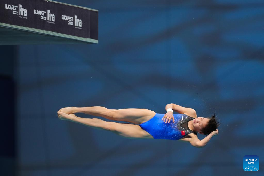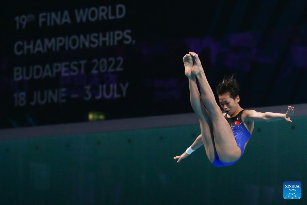 Quan Hongchan of China competes during the mixed 3m&10m team final of diving at the 19th FINA World Championships in Budapest, Hungary, June 29, 2022. (Xinhua/Zheng Huansong)