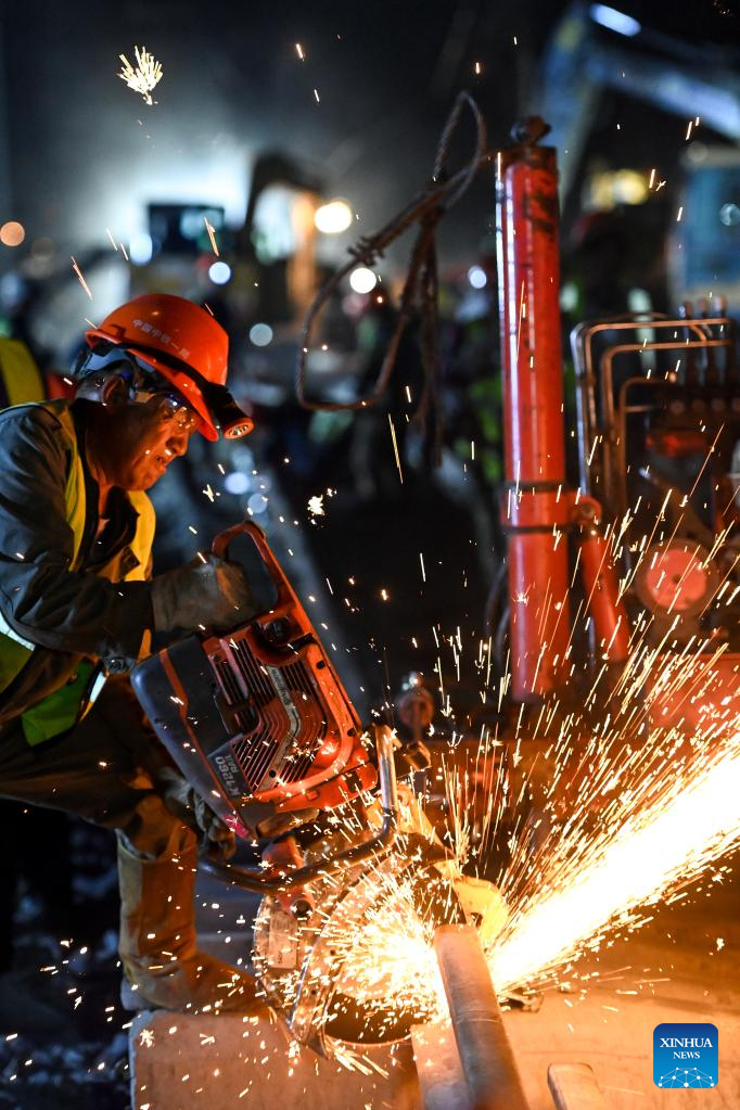 A staff member works at the construction site of the Diwopu railway station in northwest China's Xinjiang Uygur Autonomous Region, June 29, 2022. The Diwopu railway station was put into operation on June 29, marking a milestone of the expansion of a railway linking Urumqi north railway station and Jiangjunmiao mining area.