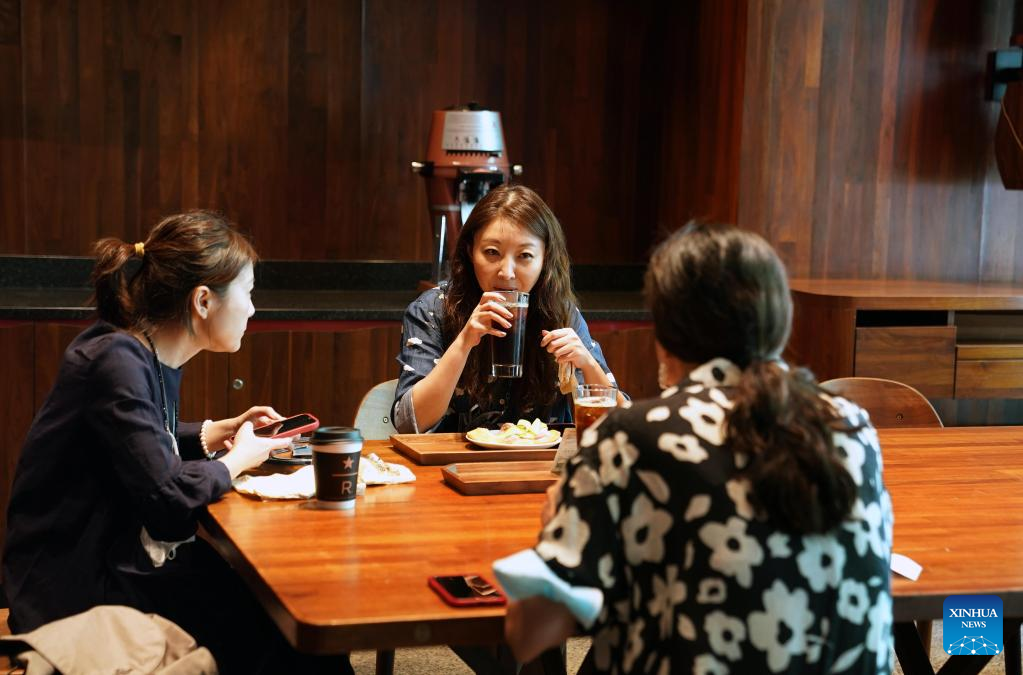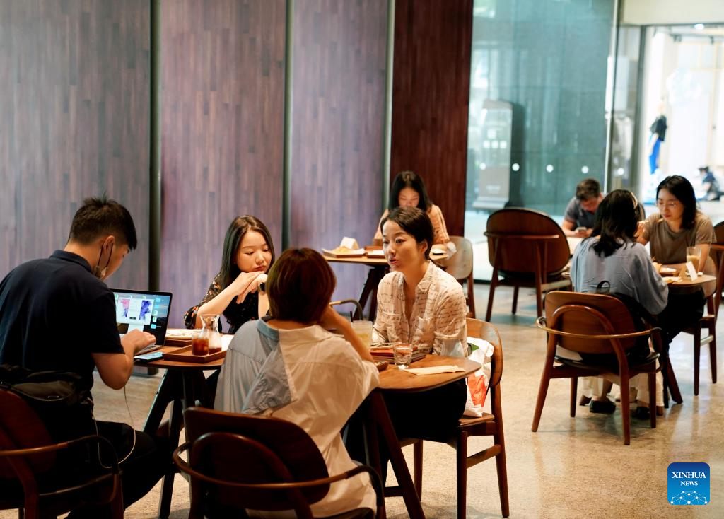 Citizens are pictured at the Starbucks Reserve Roastery in Shanghai, east China, June 29, 2022. China's financial hub Shanghai is gradually resuming dine-in services at restaurants starting from Wednesday as the COVID-19 epidemic has waned in the city. (Xinhua/Liu Ying)