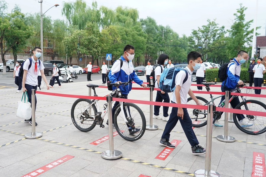 Beijing's primary and middle school students returned to campus on Monday after over 50 days of remote education due to a local COVID-19 resurgence. (Xinhua/Ren Chao)