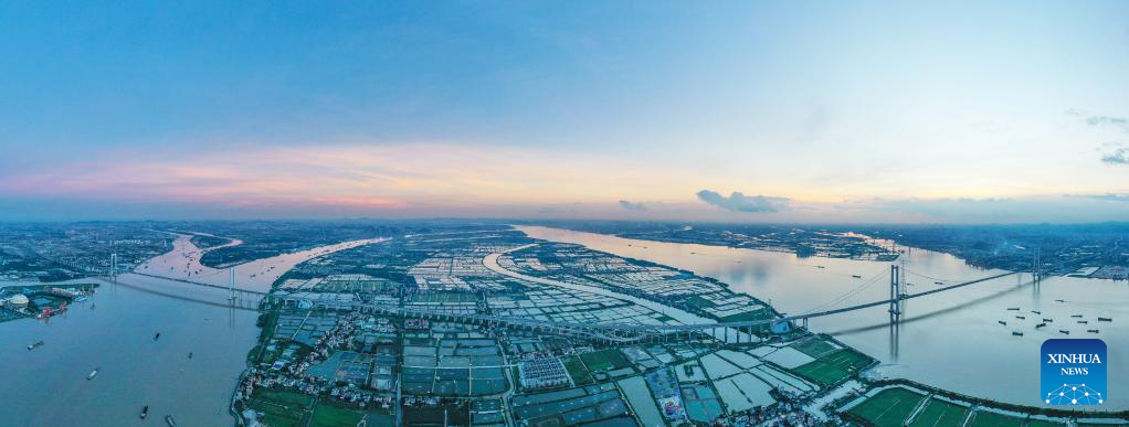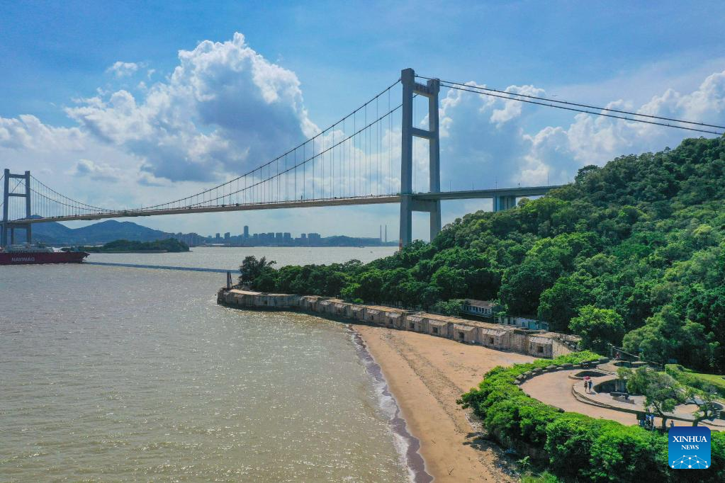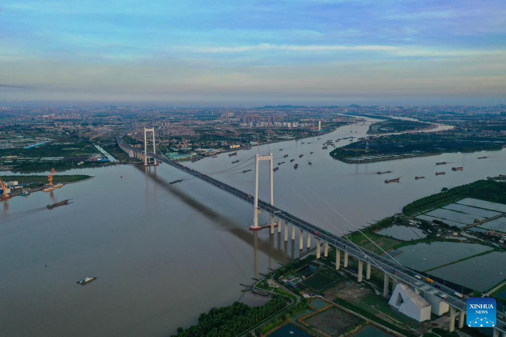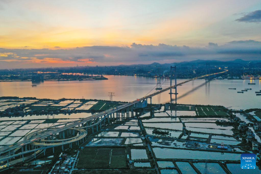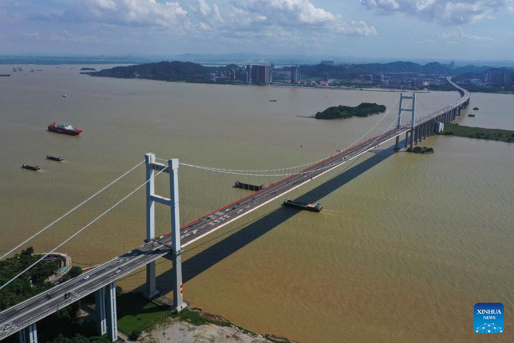 Aerial photo taken on June 29, 2022 shows the panorama of the Nansha Bridge, which links Guangzhou City and Dongguan City, in south China's Guangdong Province.
