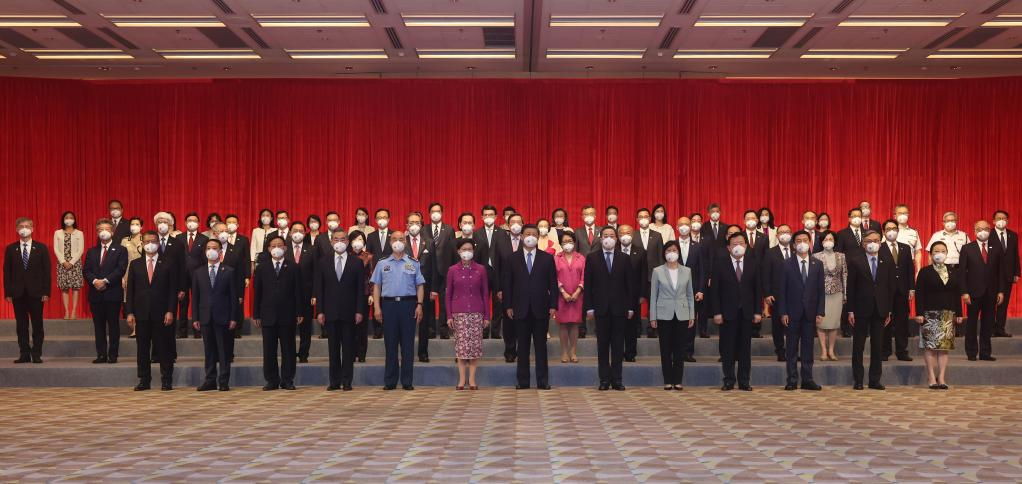 Chinese President Xi Jinping meets with senior figures of the Hong Kong Special Administrative Region's executive, legislative and judicial bodies in Hong Kong, south China, June 30, 2022. (Xinhua/Ju Peng)