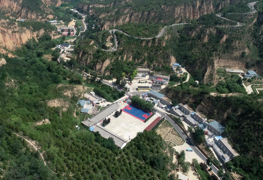 Aerial photo taken on July 29, 2020 shows a view of Liangjiahe Village of Yanchuan County in Yan'an, northwest China's Shaanxi Province. Liangjiahe Village, used to be a barren mountain village, has been lifted out of poverty through the development of rural tourism and characteristic agriculture over years. (Xinhua/Zhang Bowen)