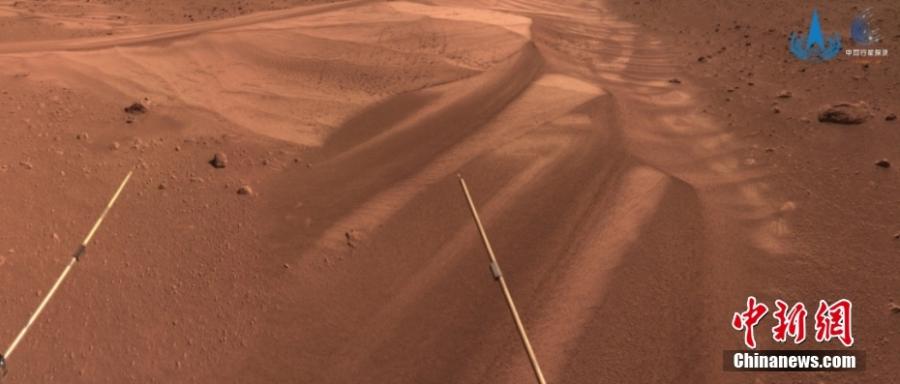 Image taken by the Zhurong Mars rover before it went dormant shows sand dunes in its patrol area. (Photo released by China National Space Administration)