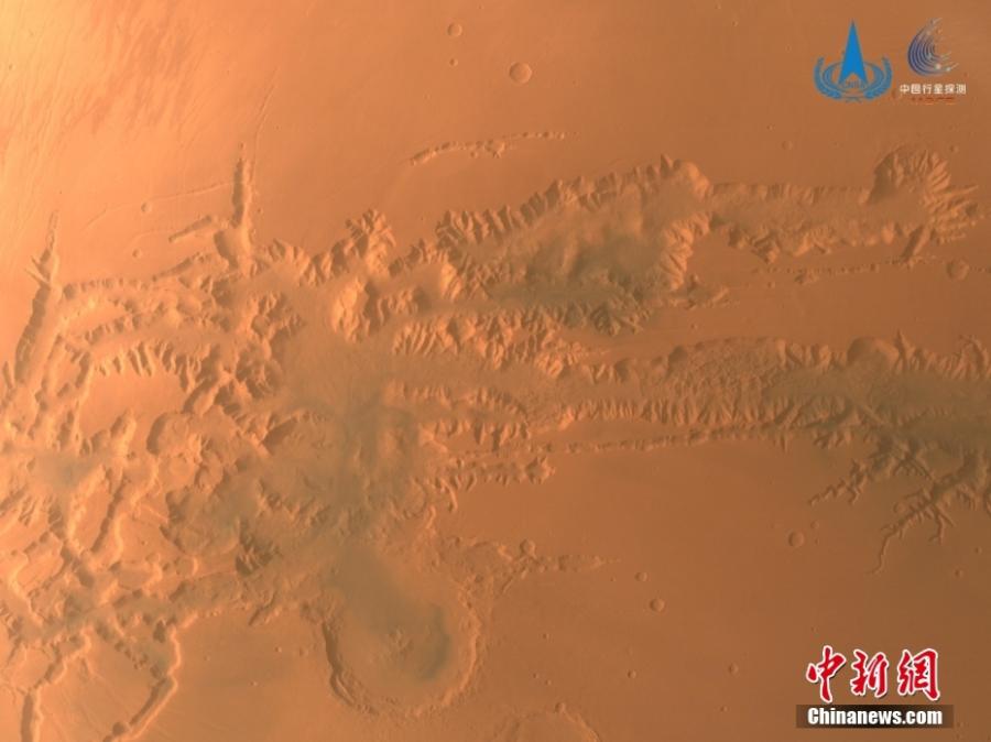 One of the most recent images taken by cameras onboard China's Tianwen 1 Mars orbiter shows the landscape of the western Valles Marineris, June 29, 2022. (Photo released by China National Space Administration)