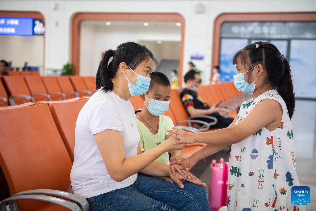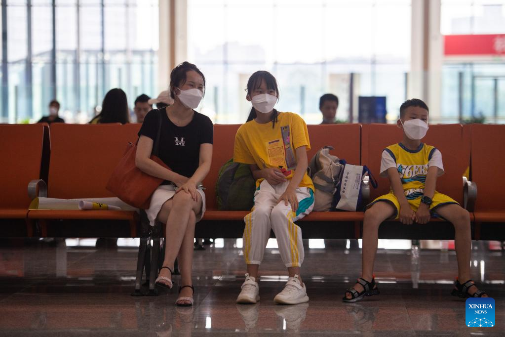 Passengers wait for trains at Zhuzhou Railway Station in Zhuzhou, central China's Hunan Province, July 1, 2022. Zhuzhou Railway Station resumed operation on Friday after its upgrade and enlargement construction starting from Oct. 20, 2021. (Xinhua/Chen Sihan)