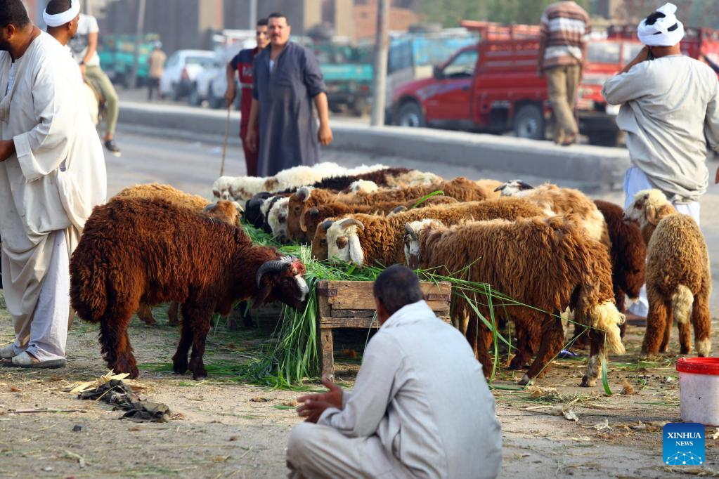 Sheep and goat are seen at a livestock market ahead of the Eid al-Adha, on the outskirts of Giza, Egypt, on July 1, 2022. (Xinhua/Ahmed Gomaa)