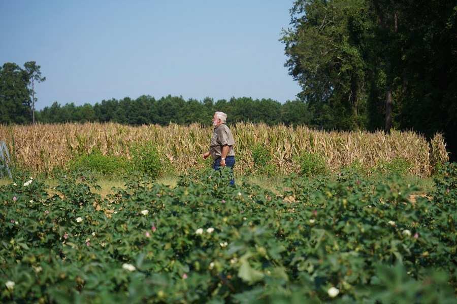 Cotton farmer Joe Boddiford walks at his farm in Sylvania, Georgia, the United States, on Aug. 1, 2019. (Xinhua/Liu Jie)