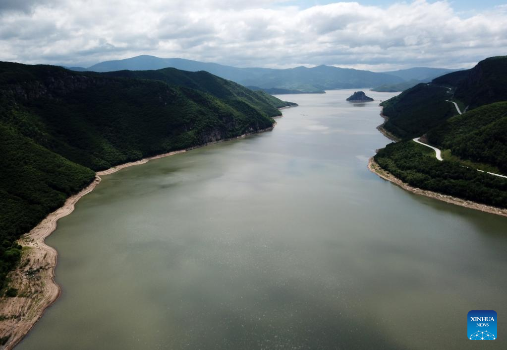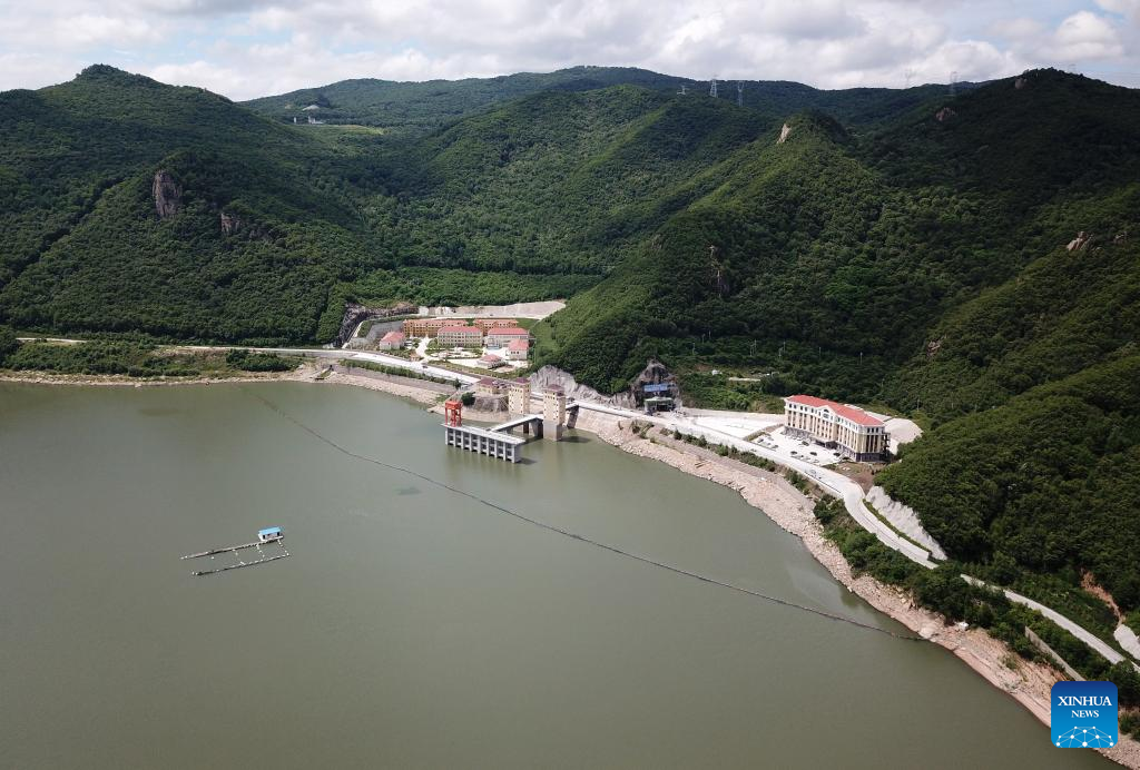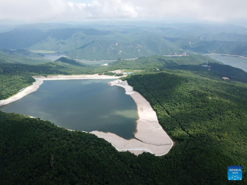 Aerial photo taken on June 29, 2022 shows the reservoir of the Huanggou pumped-storage hydropower station in Hailin City of Mudanjiang, northeast China's Heilongjiang Province. Huanggou power station, the pumped-storage hydropower station with the highest latitude in China, was put into full operation on Wednesday. (Xinhua/Wang Jianwei)