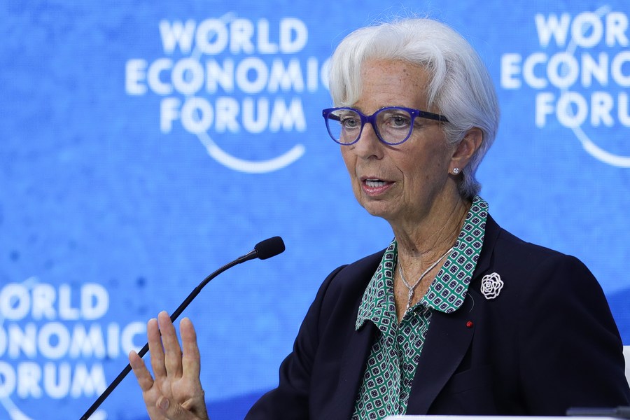 European Central Bank (ECB) President Christine Lagarde attends a session of the World Economic Forum (WEF) Annual Meeting 2022 in Davos, Switzerland, May 25, 2022. (Xinhua/Zheng Huansong)