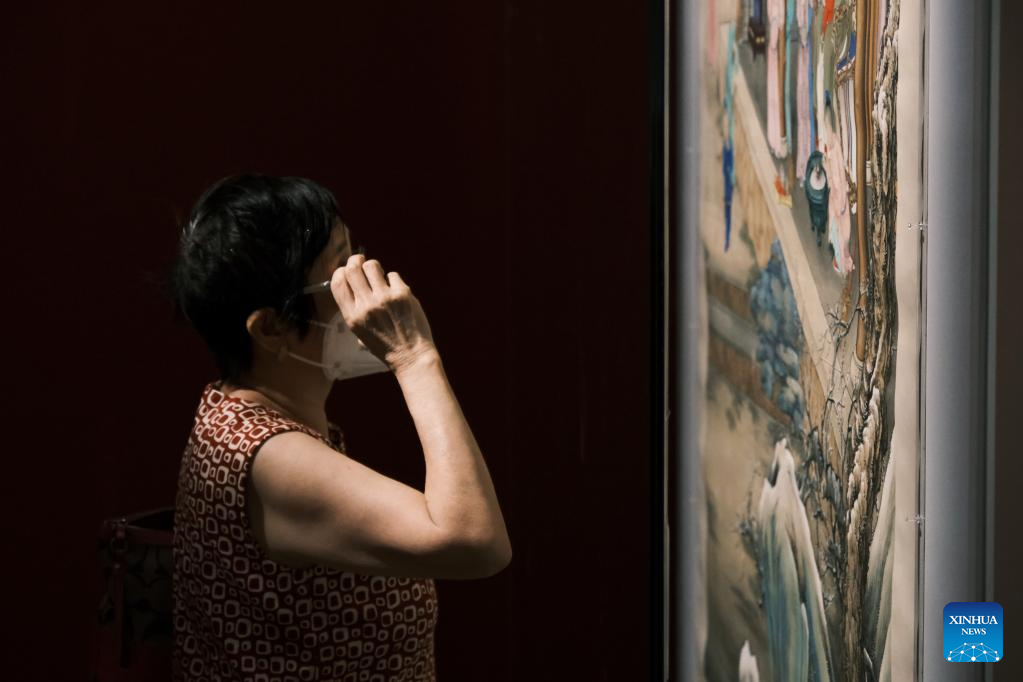 A woman visits the Hong Kong Palace Museum in Hong Kong, south China, July 3, 2022. The Hong Kong Palace Museum, located in the West Kowloon Cultural District of the Hong Kong Special Administrative Region, was open to the public on Sunday. (Xinhua/Wang Shen)