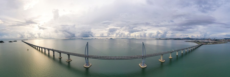 Aerial panoramic photo taken on Sept. 12, 2020 shows the Hong Kong-Zhuhai-Macao Bridge in south China. (Xinhua/Chen Yehua)
