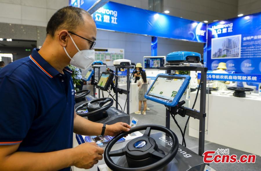 A visitor experiences the automatic driving system of Beidou Navigation during the 2022 Agricultural Machinery Expo in Urumqi, capital of northwest China's Xinjiang Uyghur Autonomous Region, July 3, 2022. (Photo: China News Service/Liu Xin)