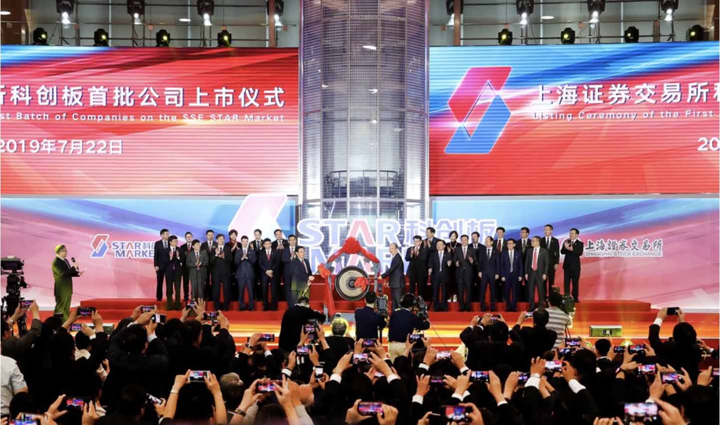 Photo taken on July 22, 2019 shows the debut ceremony of China's sci-tech innovation board (STAR market) at the Shanghai Stock Exchange in Shanghai, east China. (Xinhua/Fang Zhe)