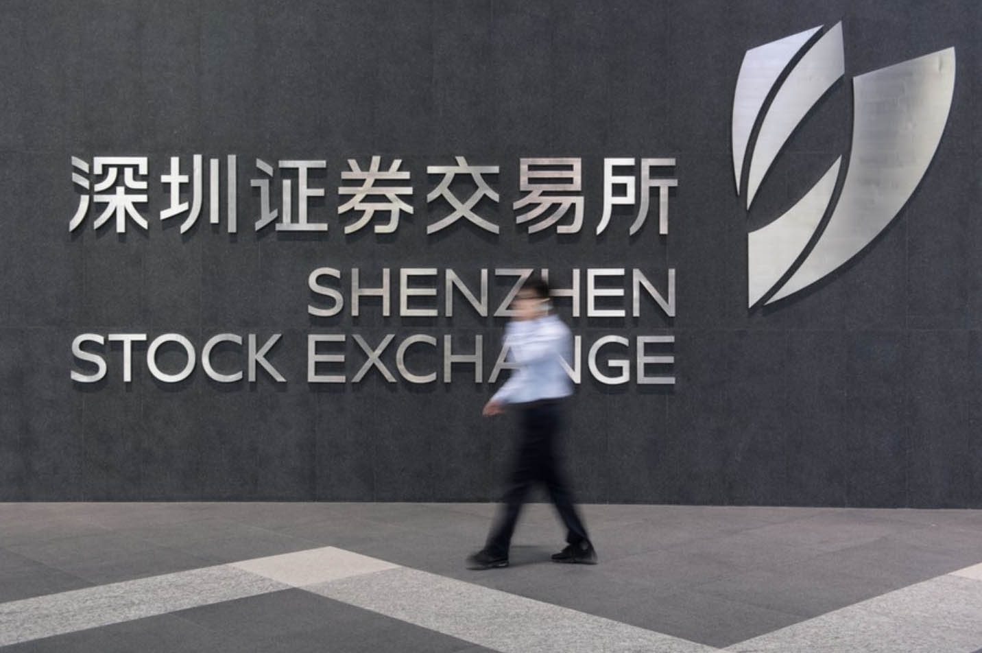 A staff member walks past the Shenzhen Stock Exchange in Shenzhen, south China's Guangdong Province, Sept. 21, 2020. (Xinhua/Mao Siqian)
