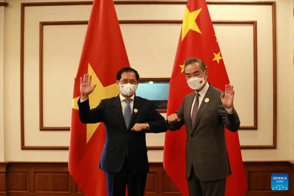 BAGAN, Myanmar, July 4 (Xinhua) -- Chinese State Councilor and Foreign Minister Wang Yi and Vietnamese Foreign Minister Bui Thanh Son met here Monday, with both sides agreeing to maintain strategic communication and advance cooperation.