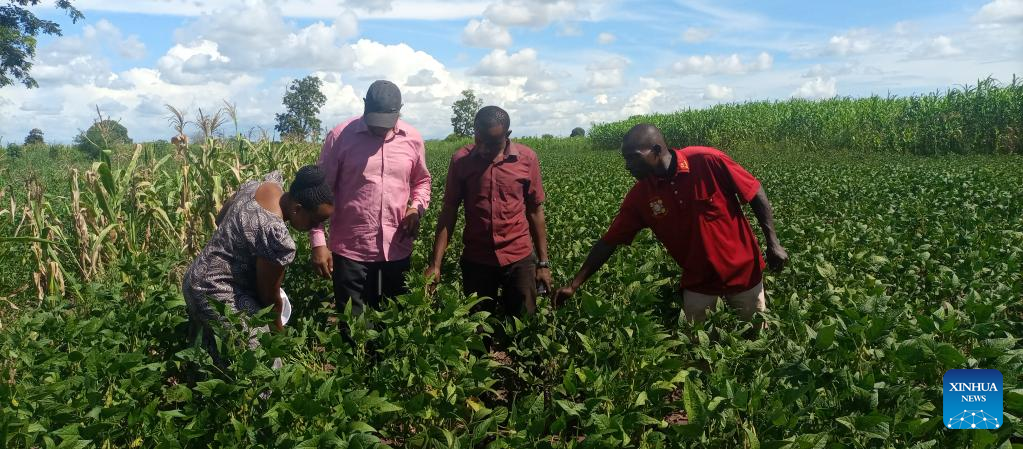 Members of the maize and soybean inter-planting project "Small Bean and Big Nutrition" work in a field in Morogoro, Tanzania, on April 21, 2022. Soy milk, a traditional Chinese drink rich in flavor and nutrition, is becoming an increasingly popular drink among Tanzanians in villages in the Morogoro region west of Dar es Salaam. (China Agricultural University/Handout via Xinhua)