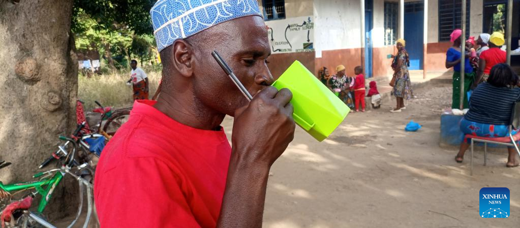 A local villager drinks soybean milk in Morogoro, Tanzania, on June 23, 2022. Soy milk, a traditional Chinese drink rich in flavor and nutrition, is becoming an increasingly popular drink among Tanzanians in villages in the Morogoro region west of Dar es Salaam. (China Agricultural University/Handout via Xinhua)
