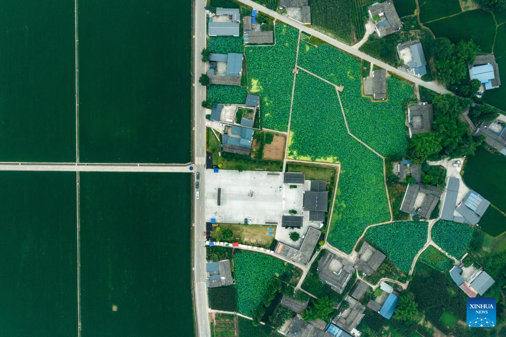 Aerial photo taken on June 22, 2022 shows a view of Yongfeng Village in Meishan, southwest China's Sichuan Province. (Xinhua/Shen Bohan)