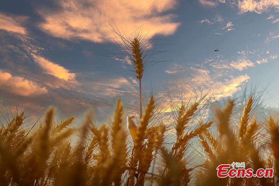 Golden harvest scenery of wheat fields under the morning glow in Yanqi county, northwest China's Xinjiang Uyghur Autonomous Region in the early July. (Photo: China News Service/Zuo Yuyuan)