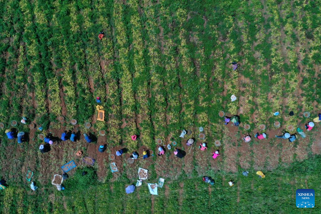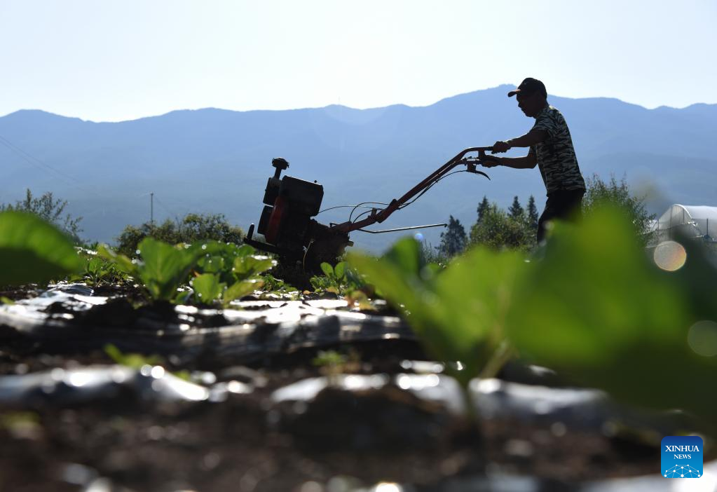 A farmer works in a field in Gucheng District of Lijiang City, southwest China's Yunnan Province, July 6, 2022. (Photo by Zhao Qingzu/Xinhua)