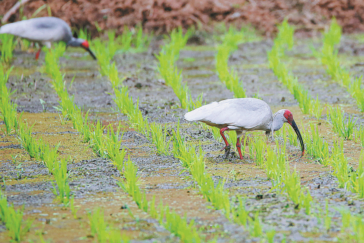 Rice fields provide a habitat for ibises in Ankang, Shaanxi province. WEI YONGQIAN/FOR CHINA DAILY