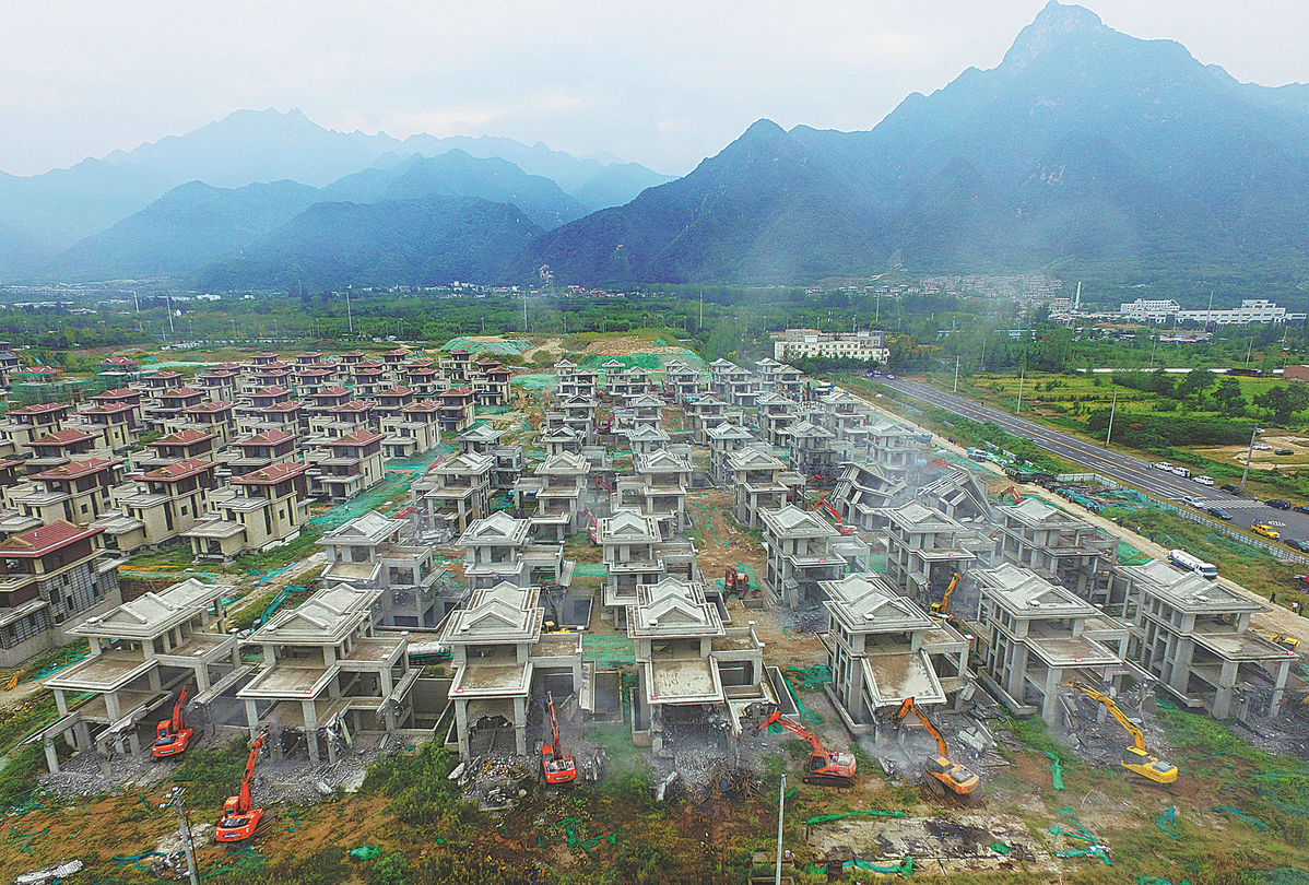 Illegally built villas were demolished in the Qinling Mountains, Shaanxi, in 2018. YUAN JINGZHI/FOR CHINA DAILY
