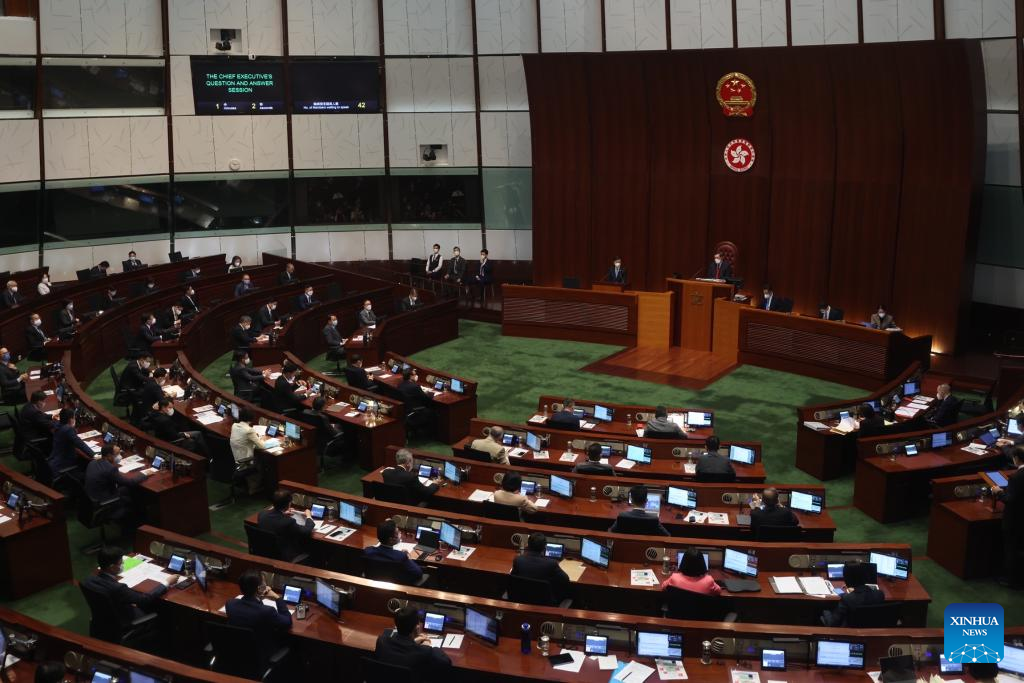 Chief Executive of the Hong Kong Special Administrative Region (HKSAR) John Lee attends his first Q&A session with members of the Legislative Council (LegCo) in Hong Kong, south China, July 6, 2022. (Xinhua/Lui Siu Wai)