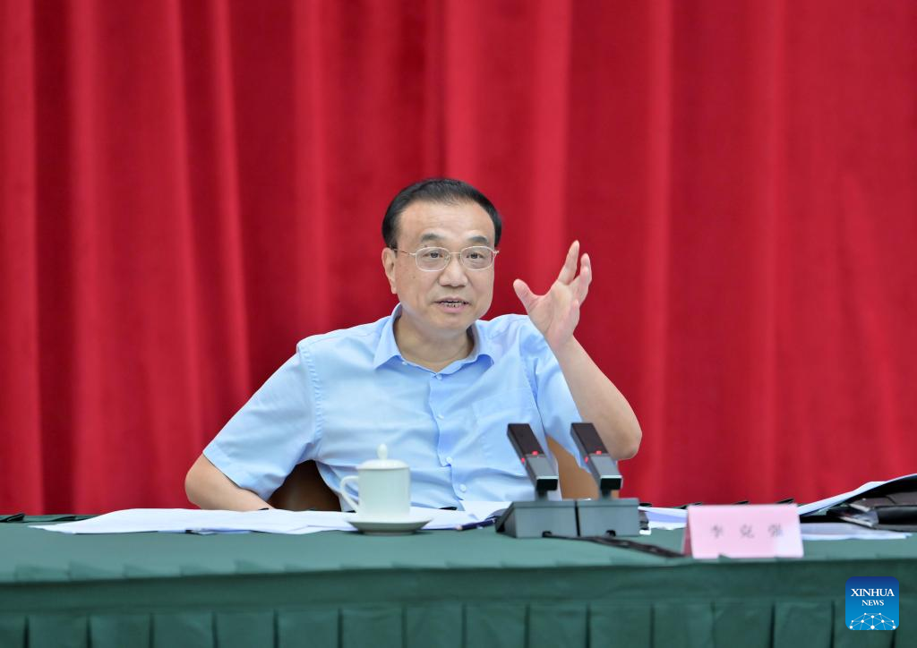 Chinese Premier Li Keqiang, also a member of the Standing Committee of the Political Bureau of the Communist Party of China Central Committee, presides over a symposium with leading officials of the coastal provincial regions, in southeast China's Fujian Province, July 7, 2022.
