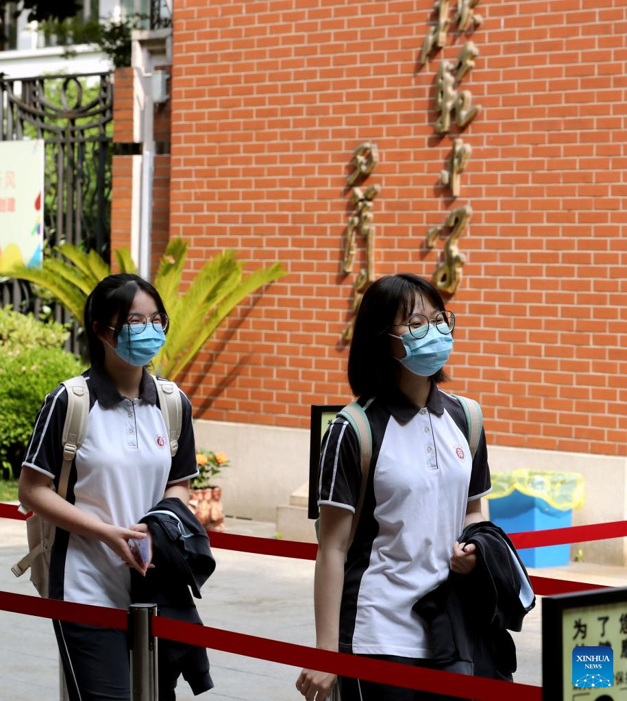 The college entrance exam, also known as Gaokao, in Shanghai started Thursday this year. The Shanghai Municipal government has postponed Gaokao of this city for a month due to the latest resurgence of COVID-19 infections. (Xinhua/Ding Ting)