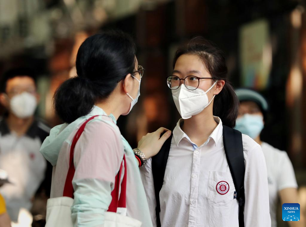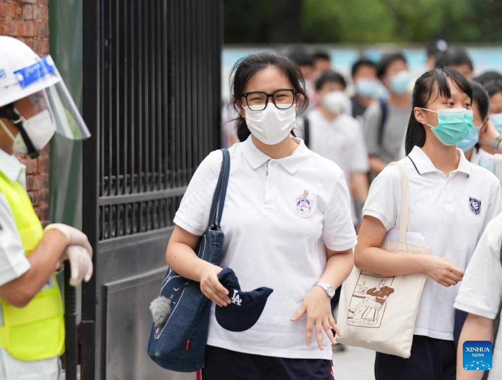 The college entrance exam, also known as Gaokao, in Shanghai started Thursday this year. The Shanghai Municipal government has postponed Gaokao of this city for a month due to the latest resurgence of COVID-19 infections. (Xinhua/Jin Liwang)