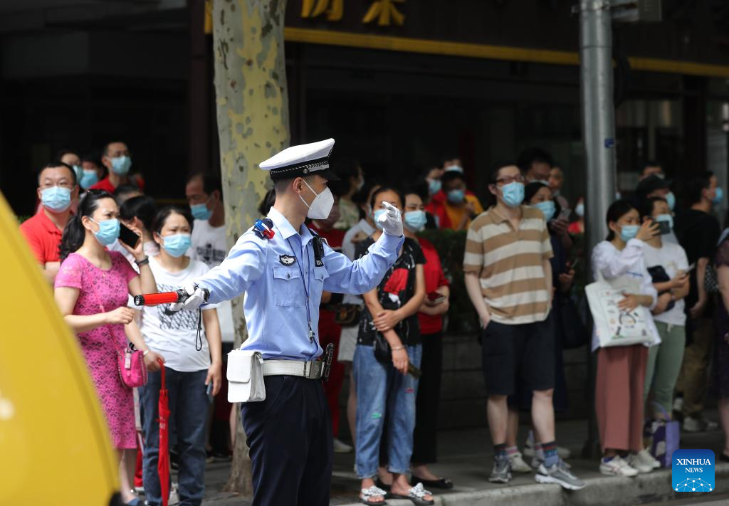 The college entrance exam, also known as Gaokao, in Shanghai started Thursday this year. The Shanghai Municipal government has postponed Gaokao of this city for a month due to the latest resurgence of COVID-19 infections. (Xinhua/Chen Fei)
