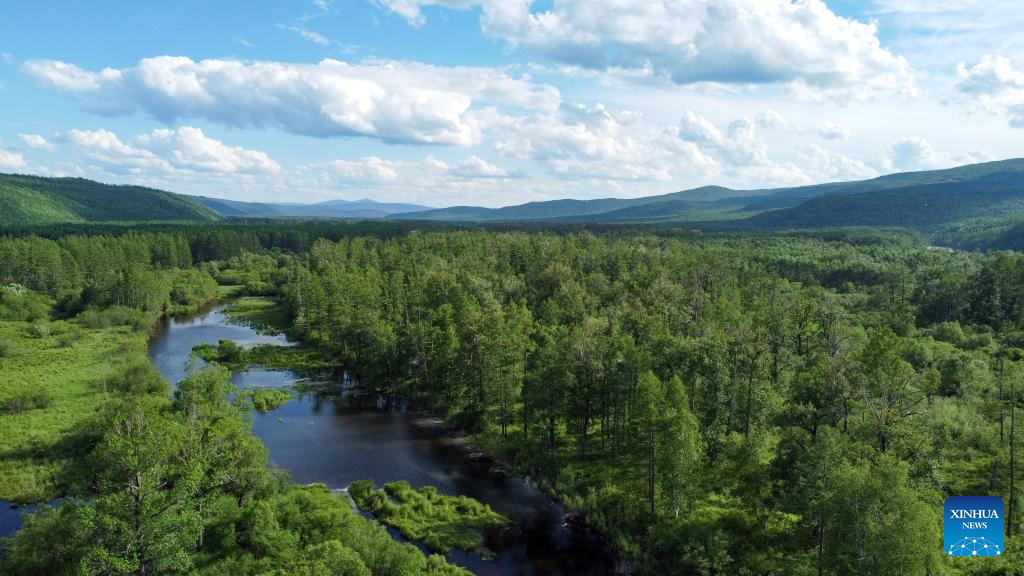 Photo taken on July 7, 2022 shows the scenery of a national wetland park in Genhe, Hulun Buir, north China's Inner Mongolia Autonomous Region. (Xinhua/Bei He)
